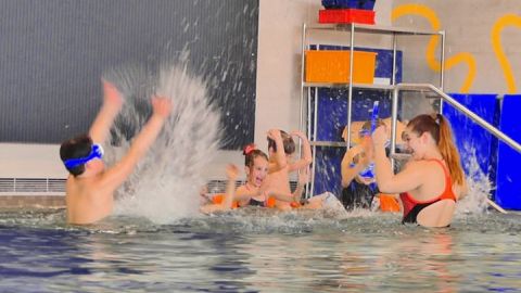 Vertrauen ins Wasser gewinnen und Grundlagen aufbauen. Im Schwimmen verbessern die Kinder gezielt die Wasserlage und bauen Vertrauen auf in das Elem…