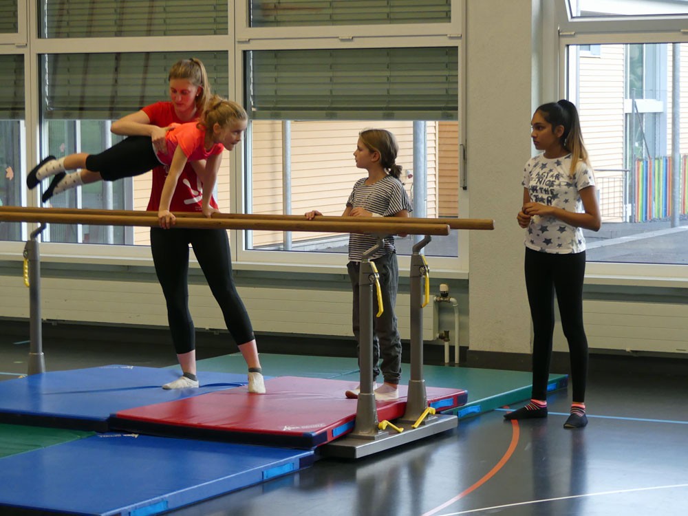 Nach den Herbstferien starten die Trainings wieder! - Hier ein paar Bilder vom Geräteturnen in Abtwil. Unter sehr kompetenter Anleitung von Soraya und Anna werden die Grundlagen trainiert. In dieser Trainingseinheit war das Thema Vorwärts- und Rückwärtsrotationen an Reck, Boden und Barren.